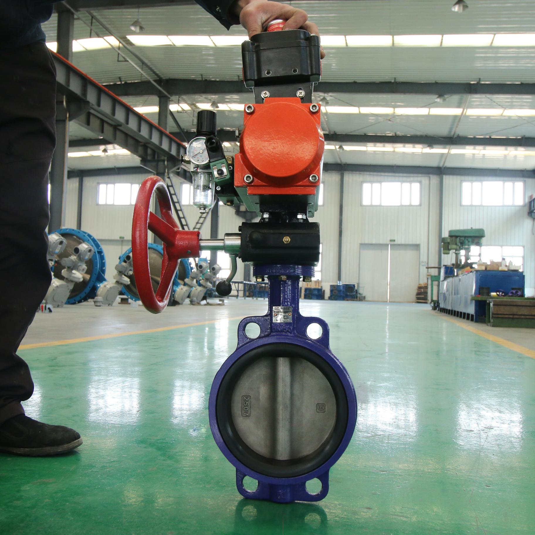 氣動蝶閥的主要優(yōu)點是結(jié)構(gòu)簡單、體積小、重量輕、成本低。氣動蝶閥尤其引人注目。安裝在高空隧道內(nèi),通過二位五通電磁閥操作方便,還可以調(diào)節(jié)流動介質(zhì)。流體阻力小,中大口徑氣動蝶閥全開時有效流通面積大,啟閉快捷省力。旋轉(zhuǎn)圓盤扳手90度即可完成開啟和關閉。由于蝶形扳手在轉(zhuǎn)軸兩側(cè)的介質(zhì)作用力接近相等,產(chǎn)生的扭矩方向相反,所以開合扭矩小,在低壓下也能實現(xiàn)良好的密封。蝶閥的密封材料是丁晴橡膠、氟橡膠、食用橡膠,內(nèi)襯四氟乙烯,密封性能好。其中,硬密封蝶閥是一種軟硬結(jié)合的金屬薄片,金屬的重量很大