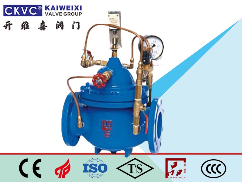 控制閥由主閥、電磁導(dǎo)閥、針閥、球閥、單向閥、行程開關(guān)、微形過濾器和壓力表組成水力控制接管系統(tǒng)。水泵需停止工作時,先由進(jìn)口壓使主閥關(guān)閉90%后,水泵停止運(yùn)轉(zhuǎn)。剩余10%由回水關(guān)閉??煞乐顾N現(xiàn)象發(fā)生。本產(chǎn)品利用電磁導(dǎo)閥控制,不需要其它裝置和能源。節(jié)約能源,保養(yǎng)簡便,停泵平穩(wěn)。電磁閥可采用交流電220V或直流電24V。該控制閥產(chǎn)品廣泛用于高層建筑、生活區(qū)等供水管網(wǎng)系統(tǒng)及城市供水工程。